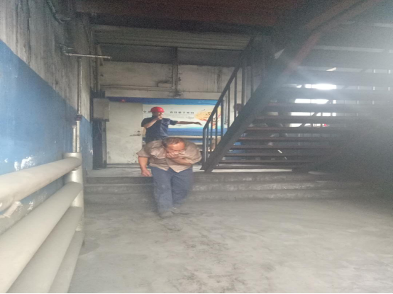救護(hù)組清理檢查是否火災(zāi)現(xiàn)場(chǎng)有未撤離的工人,同時(shí)將清理情況向總指揮匯報(bào)