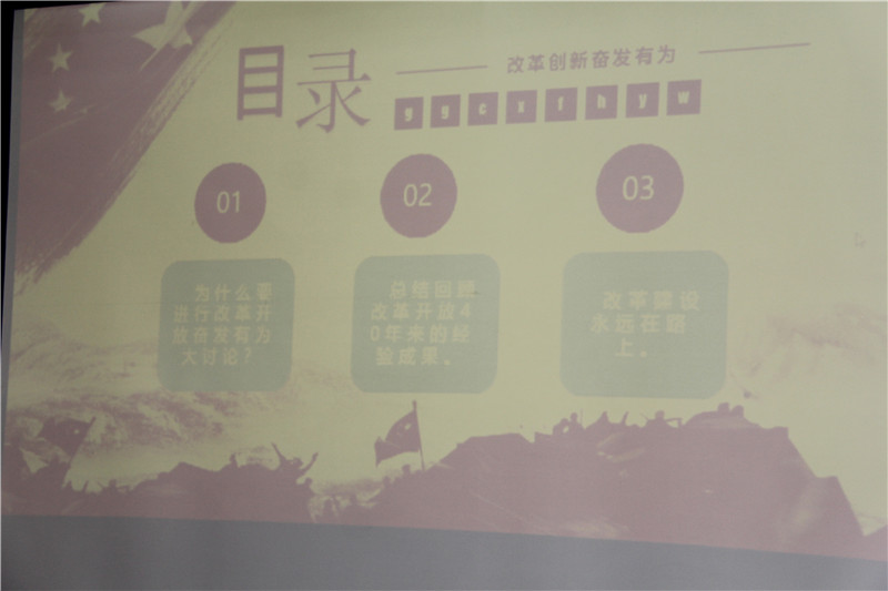 宣講授課由經(jīng)過縣委宣傳部集中培訓(xùn)的喬晉萍、張兆保兩位宣講輔導(dǎo)員宣講,宣講輔導(dǎo)的主要內(nèi)容是開展“改革創(chuàng)新 奮發(fā)有為”大討論活動重要意義和方法步驟。